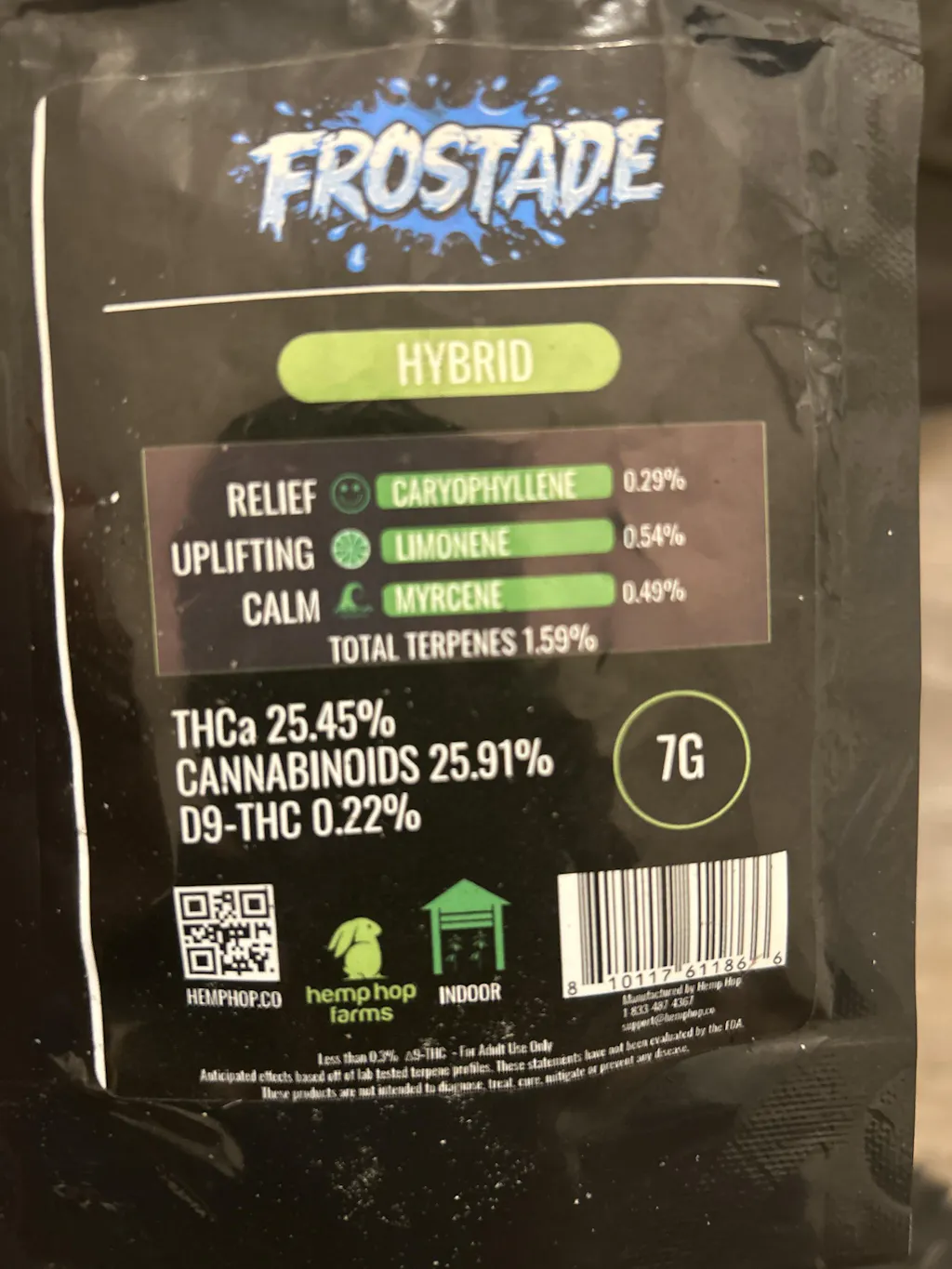 Shop now for premium indoor-grown Frostade THCa Flower at Hemp Hop.